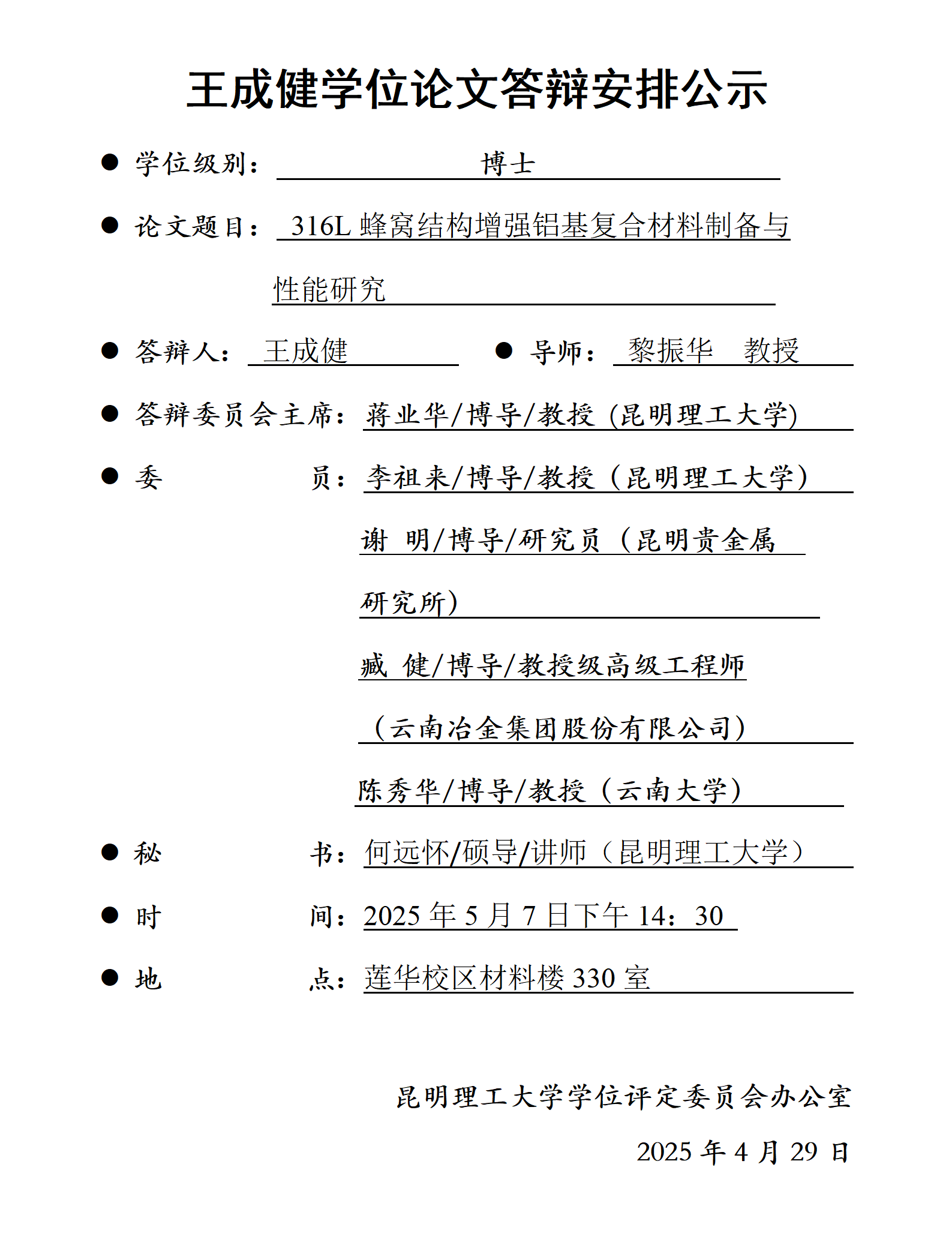 王成健学位论文答辩安排公示