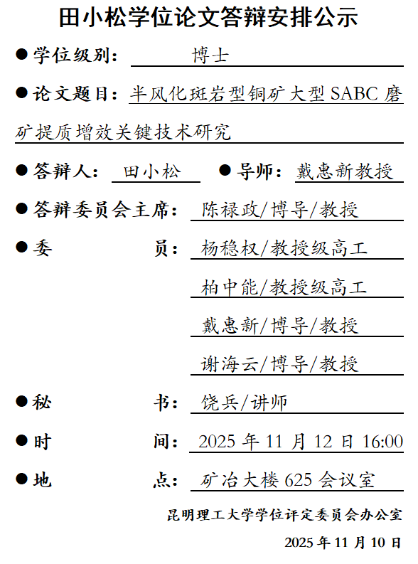 田小松学位论文答辩安排公示