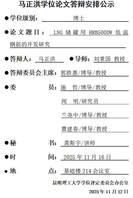 马正洪学位论文答辩安排公示