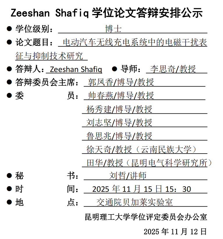 Zeeshan Shafiq学位论文答辩安排公示