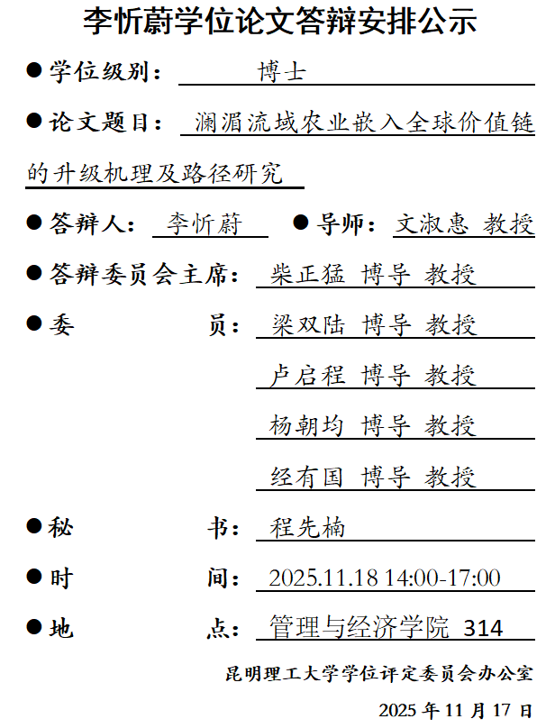 邱开忠学位论文答辩安排公示