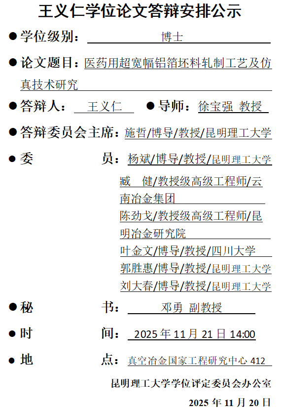 王义仁学位论文答辩安排公示
