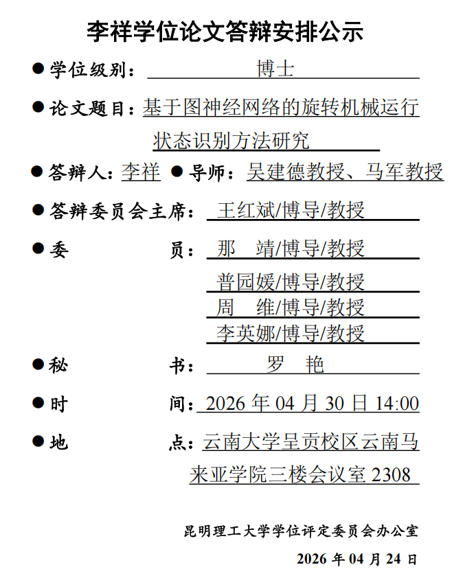 李祥学位论文答辩安排公示