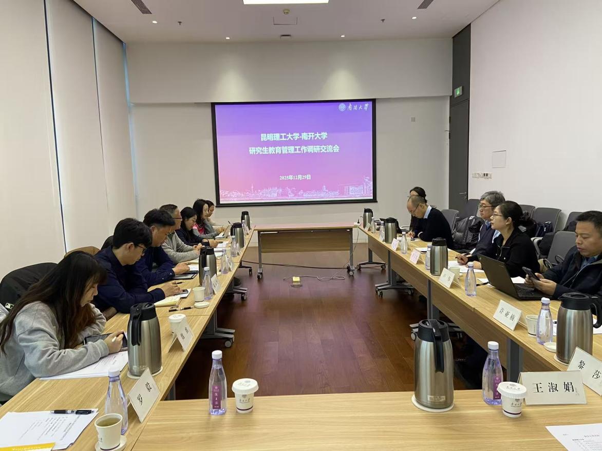 南开大学研究生院常务副院长陈凌懿介绍了南开大学在研究生招生指标分配动态调整机制、研究生导师招生资格审核、研究生课程质量评价等方面的先进经验,研究生院徐天瑞院长介绍了昆工研究生培养的基本情况,双方就上述议题进行了充分的沟通。