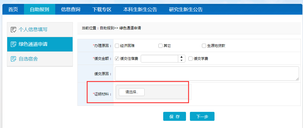 绿色通道:家庭经济特别困难的研究生新生如暂时筹集不齐学费和住宿费,可在开学报到期间,通过高校开设的“绿色通道”先办理入学手续,暂不缴纳相关费用即入学就读。 申请程序: 1. 在迎新网开通期间,登陆迎新系统或“智慧昆工”微信公号或“智慧昆工APP(下载二维码见文末)”,到“绿色通道申请”办理环节填写需要申请缓交的费用性质(学费或住宿费,需要分别填写)及金额,如下图所示: